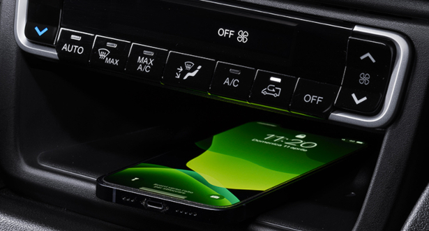 Droša vieta panelī, kur ērti ievietot un uzlādēt viedtālruni. Tā atrodas spārnā zem klimata kontroles sistēmas ar automātisku klimata kontroli vai jaunā centrālā glāžu turētāja centrālajā daļā ar manuālo vadības sistēmu.