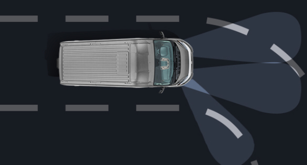 Jaunais Ducato nosaka joslu marķierus un ceļa malas un, ja nepieciešams, autonomi stūrē, lai noturētos joslas centrā.
