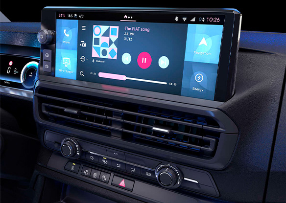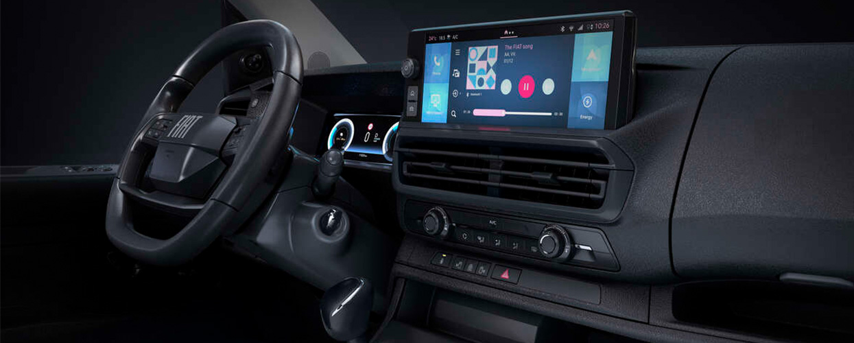 Jaunais Fiat Professional Scudo ir aprīkots ar novatorisku digitālo mērinstrumentu paneli ar 4 collu LCD displeju, kurā tiek attēlota svarīgākā informācija par autovadīšanu.