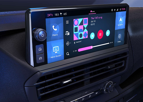 * “Apple CarPlay” nodrošina “Apple Inc”. Šis pakalpojums var nebūt pieejams Jūsu vidē. “Android Car” pakalpojumu nodrošina “Google Inc”. Šis pakalpojums var nebūt pieejams Jūsu vidē. No ražotāja “Fiat Professional”, importētāja “Autobrava” un izplatītāja neatkarīgu iemeslu dēļ pakalpojumi “Apple CarPlay” un “Android Car” var nebūt pieejami Jūsu valstī vai uz tiem var attiekties ierobežojumi. Ražotājs “Fiat Professional”, importētājs un izplatītājs neuzņemas nekādu atbildību par pakalpojumu “Apple CarPlay” un/vai “Android Car” nepieejamību vai ierobežotu darbību Jūsu automašīnā.